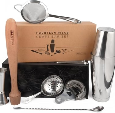 Has Everything You Need: From the Boston shaker tins and two types of strainers to a precise jigger and a classic bar spoon, this set is thoughtfully complete.