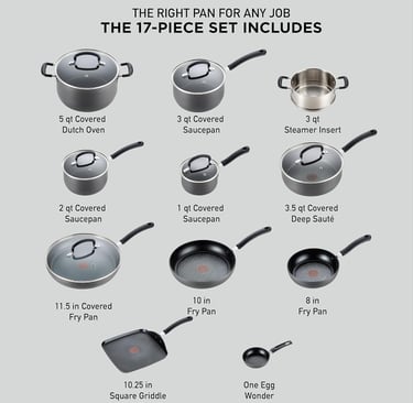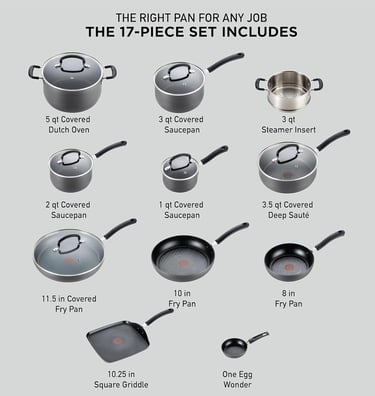For the Family Needing a Complete Kitchen Solution: T-Fal 17-Piece Set