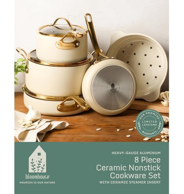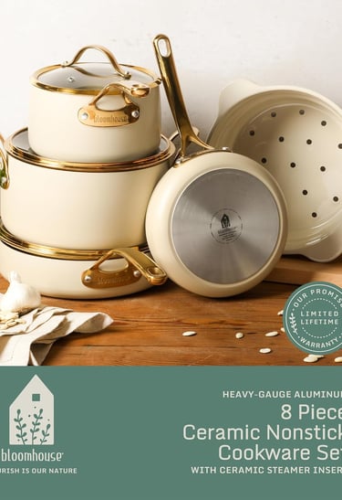 5. bloomhouse 8 Piece Ceramic Nonstick Cookware Set: The Eco-Chic Choice